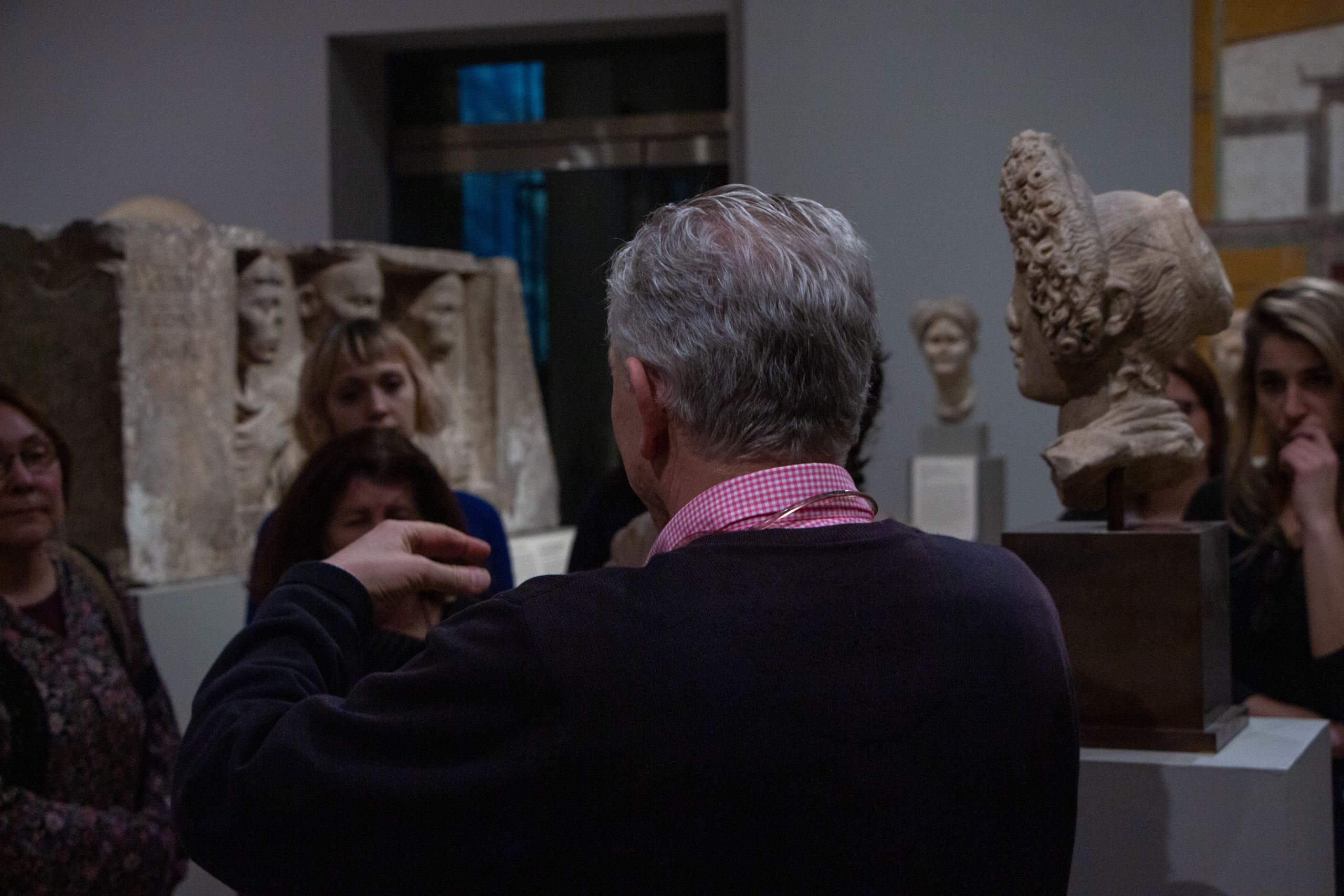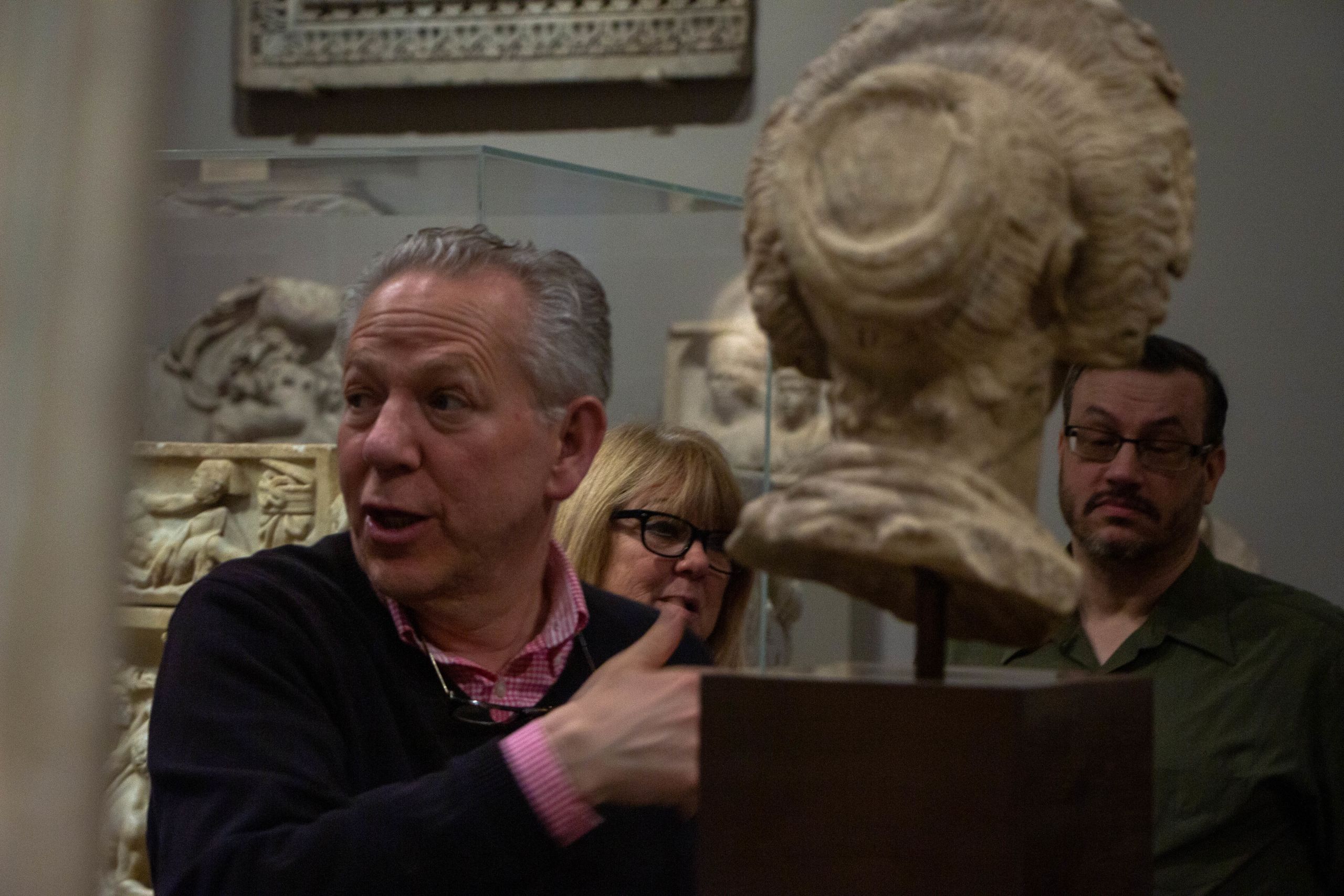 Andrew Lear speaks with tour attendees at the Museum of Fine Arts in Boston on April 17, 2019. (Photo by K. Sophie Will/BU News Service)